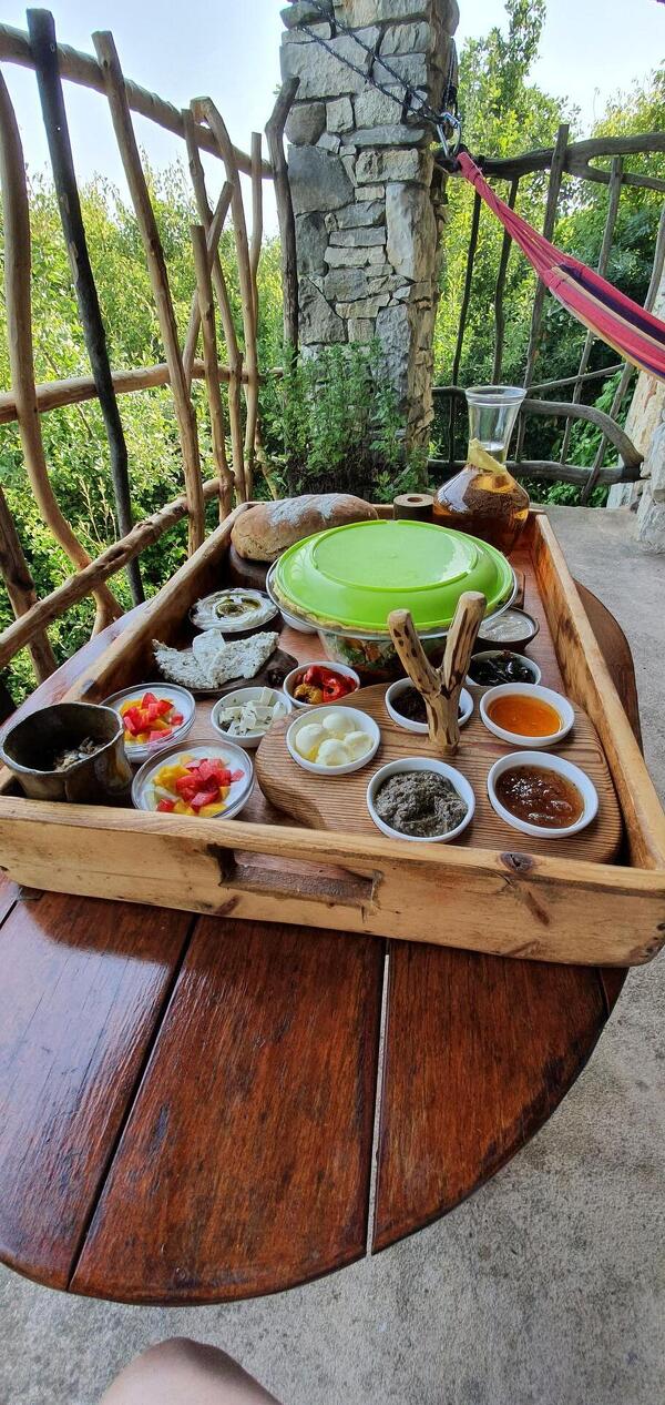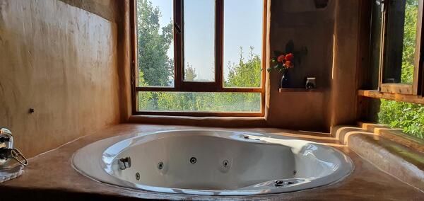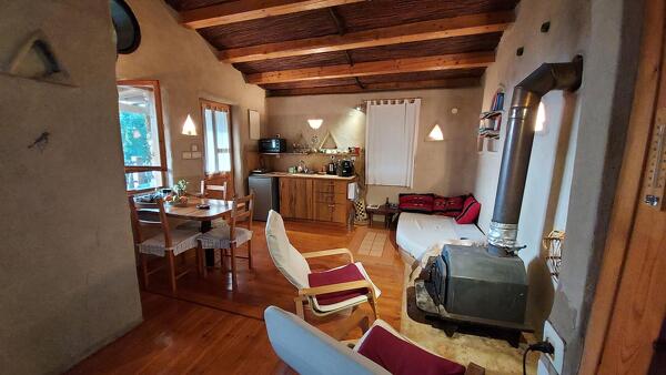המטבח מאובזר באופן המלא להכנת אוכל במקום. יש גם אח עצים להסקה עם סלסלה מלאה גזעים לבערה. יש גם ג'קוזי ענק עם חלונות הצופים אל הנוף הירוק.