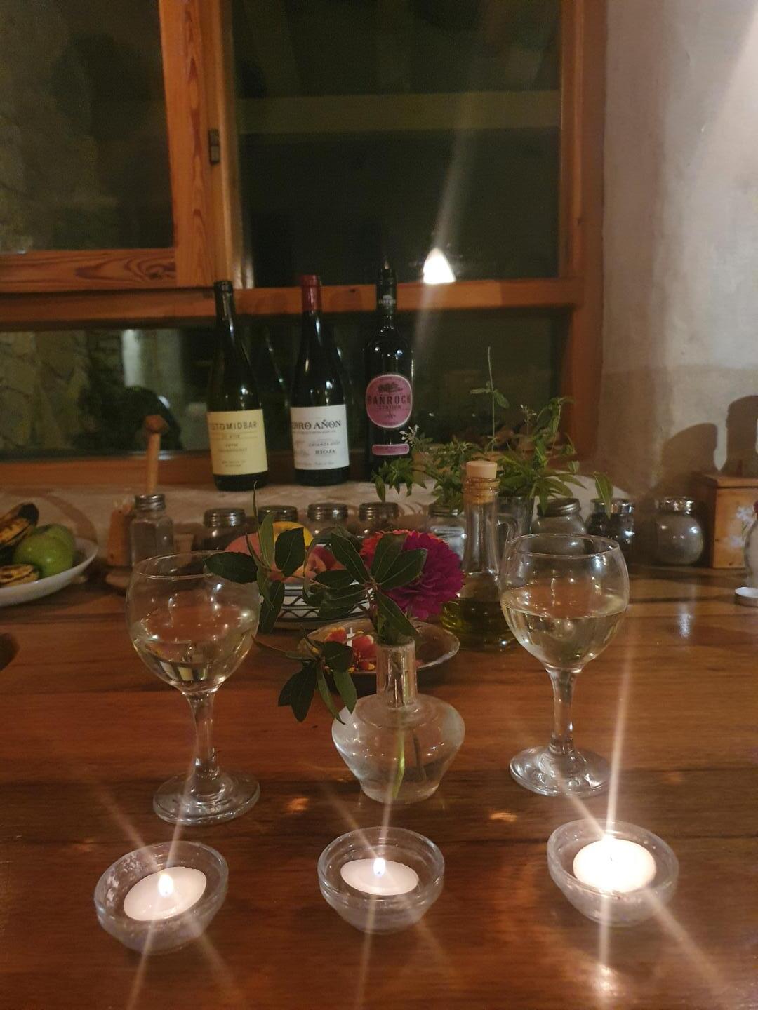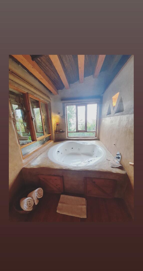 המטבח מאובזר באופן המלא להכנת אוכל במקום. יש גם אח עצים להסקה עם סלסלה מלאה גזעים לבערה. יש גם ג'קוזי ענק עם חלונות הצופים אל הנוף הירוק.