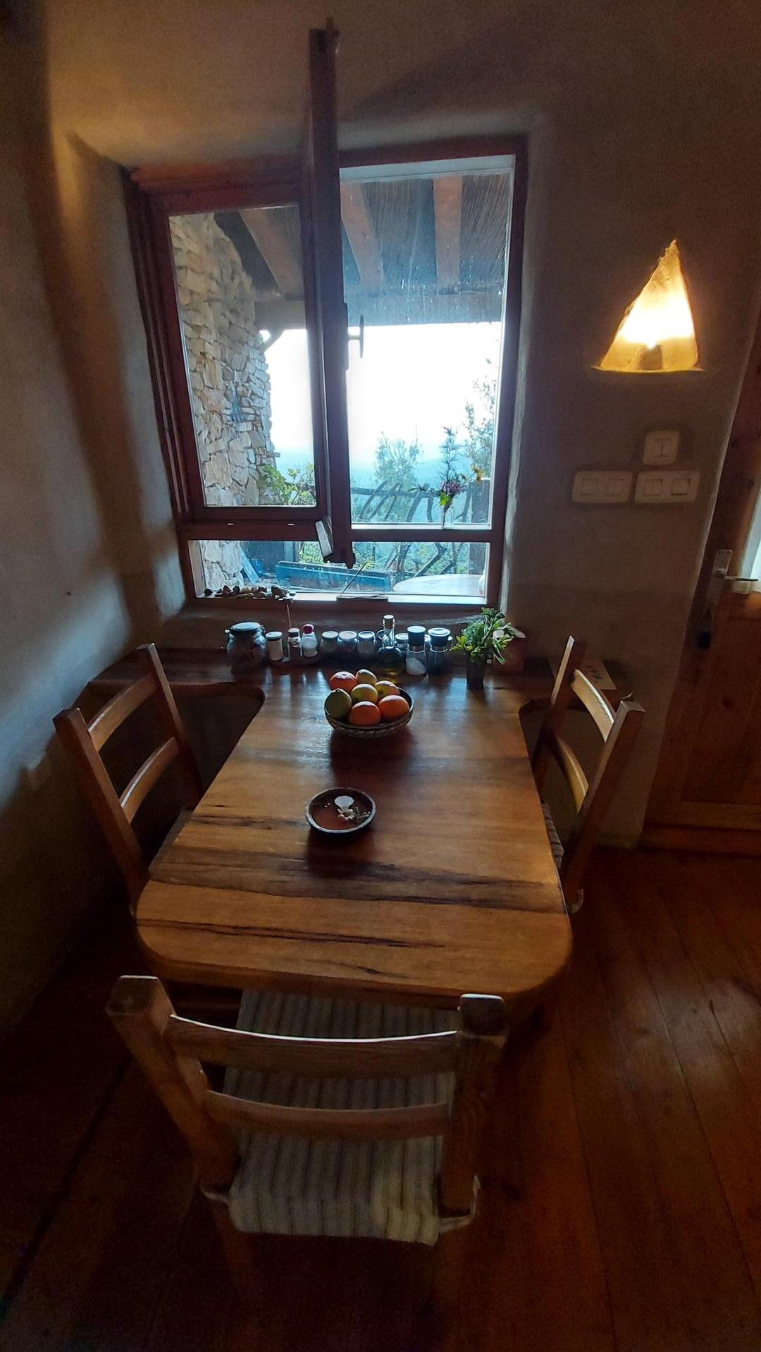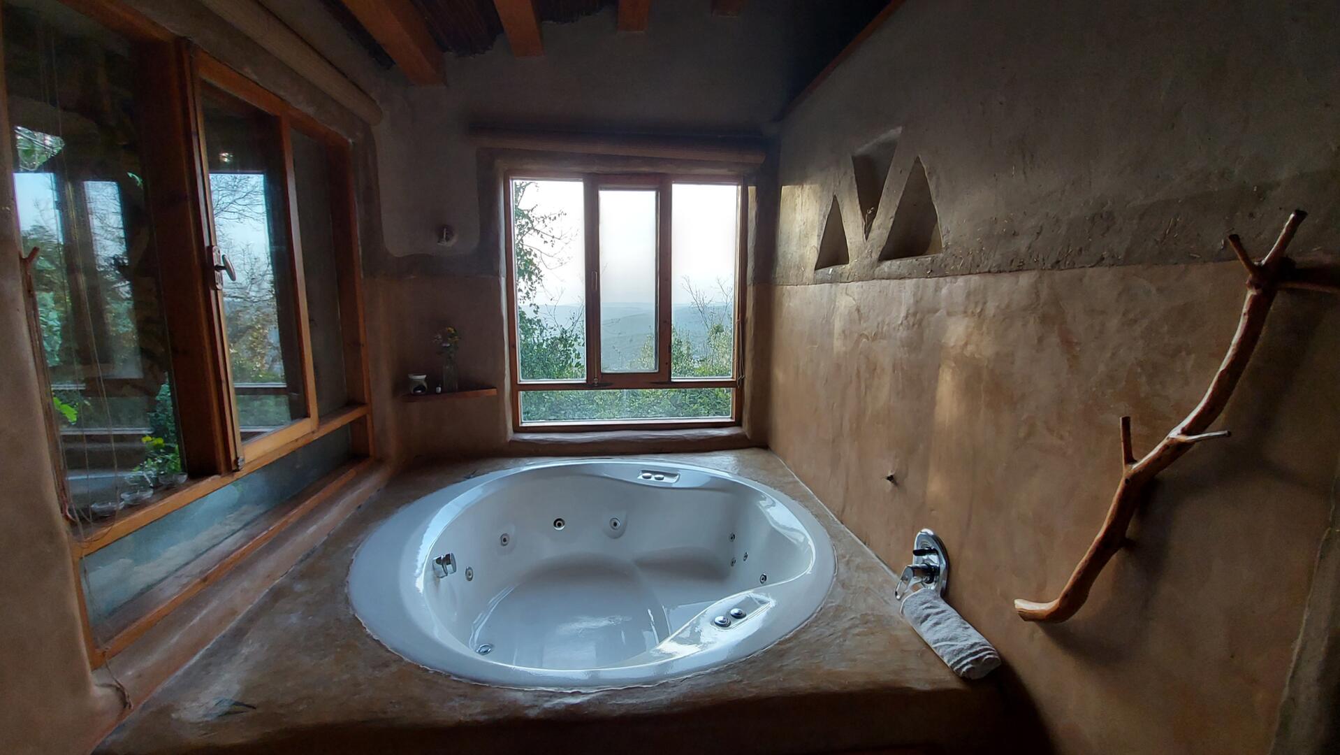 המטבח מאובזר באופן המלא להכנת אוכל במקום. יש גם אח עצים להסקה עם סלסלה מלאה גזעים לבערה. יש גם ג'קוזי ענק עם חלונות הצופים אל הנוף הירוק.