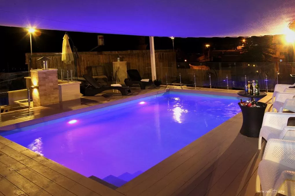 "כמה פעמים יצא לך לשמוע את המילה 'וואו' מאורחים?" אני שואל אותו, ובמקום לענות הוא מוביל אותי במעלה המדרגות אל מתחם חוץ סופר מושקע עם בריכה מחוממת, ג'קוזי ספא, מטבח פתוח ומלא פינות ישיבה מול נוף העיר העתיקה והר מירון. תוסיפו עוד 'וואו' לרשימה... בחלל הכניסה למתחם תמצאו סאונה יבשה וחדר טיפולים השוכן בחלל שהתגלה במקרה, בעת החפירות במבנה העתיק.