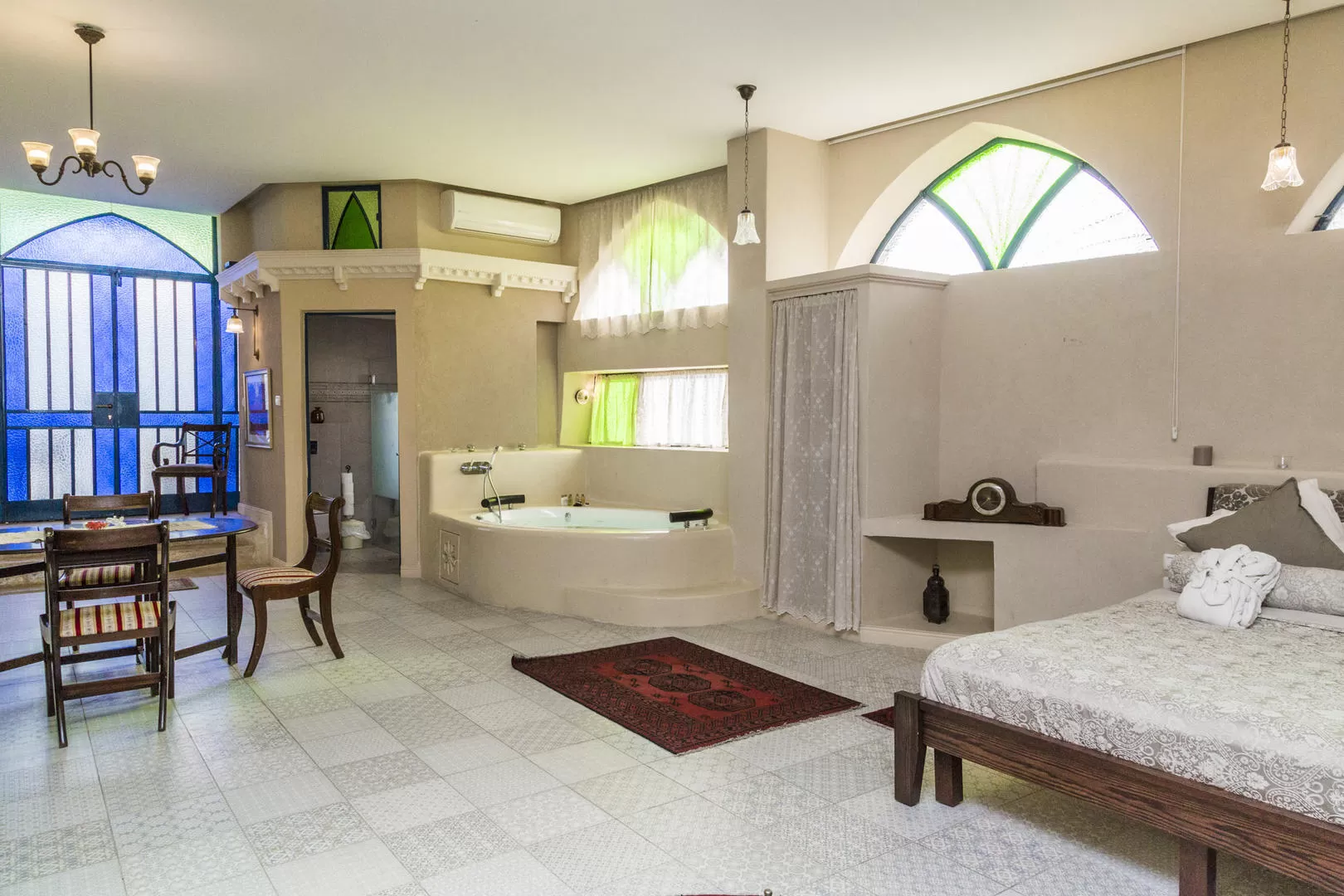 5 הסוויטות שונות בגודלן ובצורתן - באחת חלל עצום ובשניה אינטימיות רומנטית ותקרה מקומרת. בשלישית מדבר הנוף וברביעית הפרטיות מעולה, אבל כולן חולקות עיצוב מוקפד שעושה כבוד לאופי העתיק של המבנה. נכון, לא תמיד התאורה הטבעית מגיעה לכל פינה בשל האופי של הסימטאות, אבל הצללים הללו נשברים בויטראז'ים הצבעוניים ויוצרים את האווירה המיוחדת כאן.