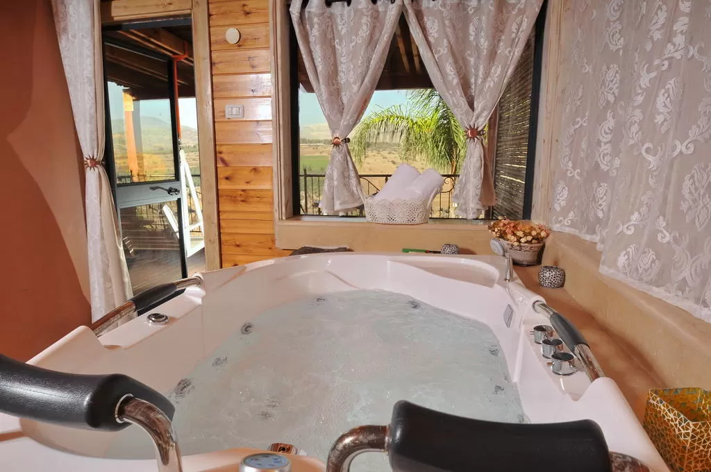 - ג'קוזי ספא ממוקם בחלקו הנפרד של המתחם בתוך מבנה עץ עם חלונות