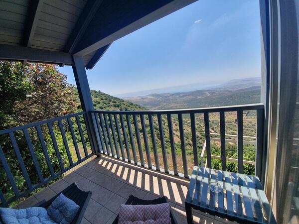 בעודי מתבוננת בתמונה הבלתי אפשרית הזאת של הנוף, אני מתחילה להרגיש את ההשפעה: מה שהתחיל כהנאה אסתטית הפך לאט לאט למשהו רוחני. משהו נפתח בתוכי. אני נמצאת כאן ביום טוב, כי אפשר לראות מהמרפסת התלויה ממערב את רכס הכרמל ומזרח את הרי הגולן, מצוק הארבל והכנרת אשר נשקפת כבריכת שחייה על כף היד. עניין של מיקום. וצופים אל הנוף הזה צימרים עם פרטיות מעולה, נוף מדהים והקפדה על אירוח איכותי.