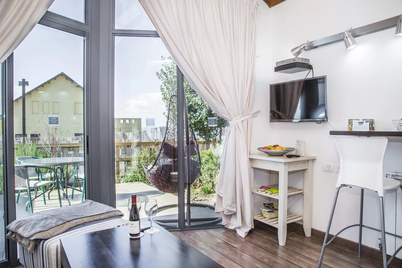 טוב, אז אנחנו לא בטוחים שזה מה שתקבלו, כי התפריט משתנה לפי העונות, חומרי הגלם הטריים והמוזיקה שהושמעה באותו יום בפטיפון הנפלא שמצוי כאן, אבל מה שבטוח הוא שהסוויטה תהייה מוכנה עבורכם כבר בשעה 10:00 בבוקר עם פירות, שוקולדים, פיצוחים, יין מיקבי רמת הגולן, ועוד הרבה הפתעות ובערב (אם תהיו חכמים ותזמינו מראש) תוגש לכם ארוחה שהיא מסע קולינרי בן 10 מנות מדהימות. בבוקר שלמחרת לא צריך למהר- את ארוחת הבוקר העשירה ניתן לקבל גם ב12:00 בצהריים.