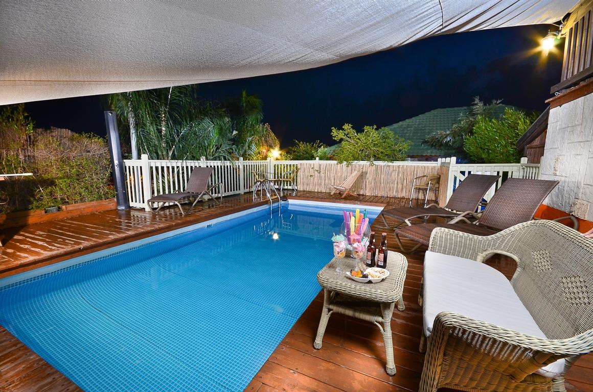שלושת היחידות כאן חולקות בריכת שחיה (אינטקס) משותפת המוקפת ב"דק" עם פינות ישיבה ומיטות שיזוף. הבריכה מוצלת בחלקה ומאפשרת גם להינות מהשמש. גם לבריכה יש פרטיות מלאה ממתחמים שכנים ויש בה גדר ושער למען הבטיחות. במקרים מסויימים ניתן לבקש מהבעלים לתאם עם שאר הזוגות את הרחצה בבריכה לפי שעות.