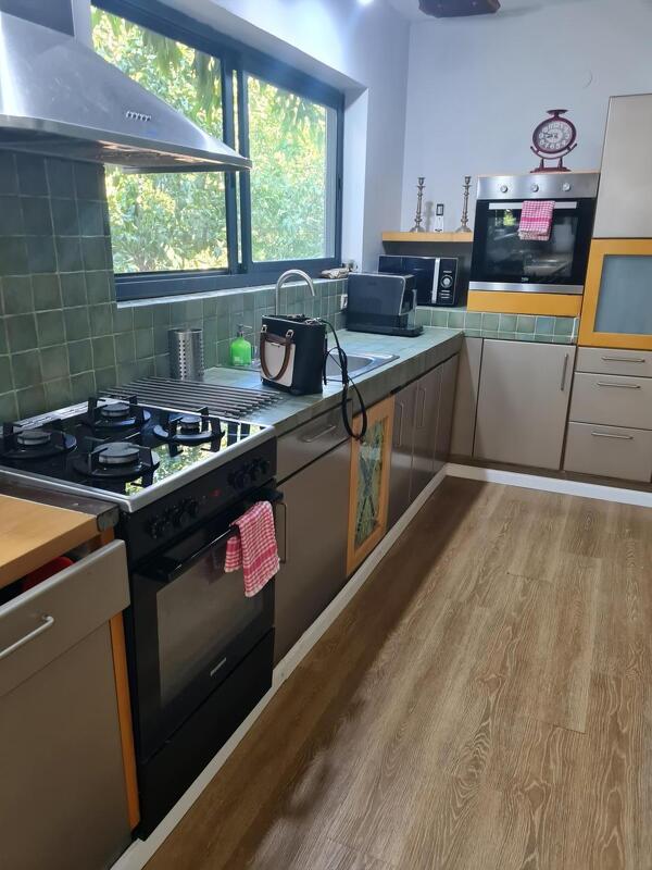 הוילה מעוצבת באופן נעים וזורם וממשיכה את הקו הכפרי בו הבחנו בחוץ. היא מאוד גדולה ויכולה לארח עד 25 אורחים, בתשעה חדרי שינה. שישה מהם בוילה ועוד שלושה במבנים שמחוץ לוילה ובקרבתה. במפלס התחתון יש מטבח ענקי ומאובזר לגמרי בשני כיורים, מדיח כלים, תנור אפייה, כיריים גז, בר מים, מקרר גדול, כלי בישול וכל מה שצריך בשביל להכין ארוחה חגיגית. שולחן האוכל הגדול עשוי מעץ ומתאים ל-14 סועדים. הסלון נעים ומרווח מכיל פינת ישיבה כפולה, טלוויזיה ו-2 קמינים.