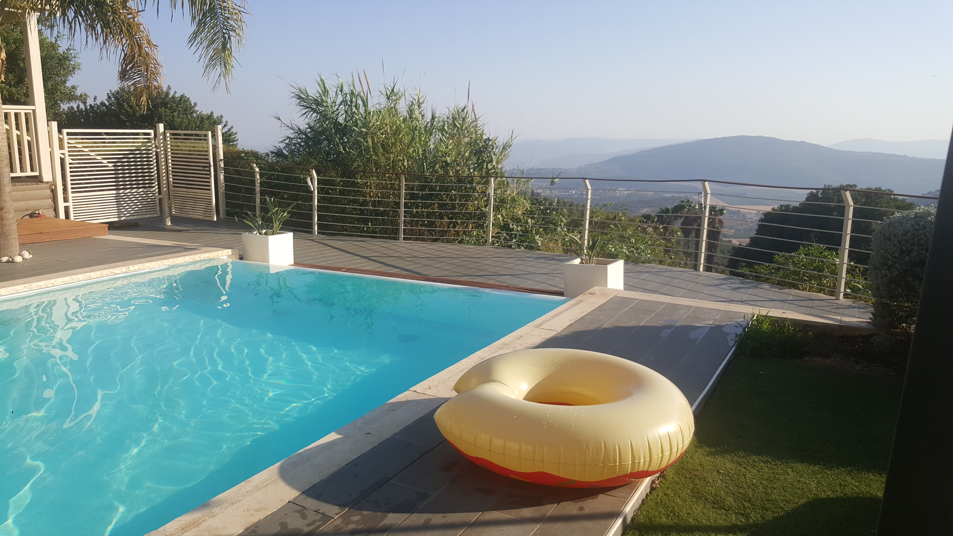 ניקוי הבריכה כאן עובד במערכת ניקוי ירוקה (UV) כך שלא מורגש ריח של כלור בחלל