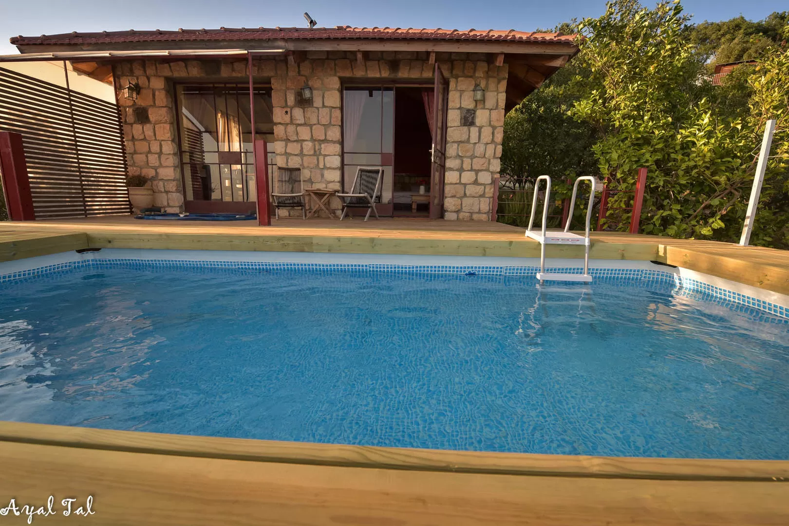 את "בית האבן" המבודד אני 'מגלה' בקצה שביל צר, מוקף בבוסתן עצי פרי ובהרבה אוויר צלול. ב"דק" יש בריכה לא גדולה, אבל בהחלט נעימה, הישר אל מול הנוף. מחוץ למבנה נמצא בוסתן מטופח ,ערסל הנטוי בין העצים וג'קוזי ספא פרטי ליחידה.
