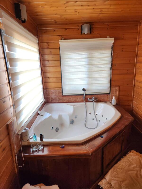 חזרה לשביל הקסום ועוד קצת ירידה בו, ומגיעים לבקתה הזוגית. זוהי בקתת עץ קטנה ומלאת אופי שיושבת גם היא מול הנוף. יש כאן חלל אחד ובו ספה נפתחת, ארון בגדים, מיטה זוגית (140X190), טלוויזיה 32 אינץ' עם חיבור להוט, חדר רחצה עם שירותים ומקלחון, מטבחון עם מכונת קפה, מיקרוגל ומיני מקרר, ופינת אוכל קטנה ומתוקה. קמין חשמלי שנמצא כאן יאפשר חימום נעים (אם אתם לא אנשי מזגן). מתחת לחלון גדול הצופה ישר לחרמון - תוכלו להתפנק בג'קוזי.