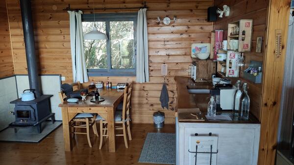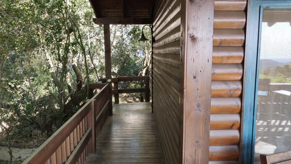 שתי בקתות עץ זהות "יושבות" במרחק מה אחת מהשנייה על צלע הר ומשקיפות באין מפריע אל הנוף הפתוח. בכדי להגיע לכאן, צריך לעבור בשביל גישה המתפתל לו בתוך חורש טבעי. בדרך רואים מבנה עץ עם מתקן סאונה יבשה, המשותף לאורחי שתי הבקתות.