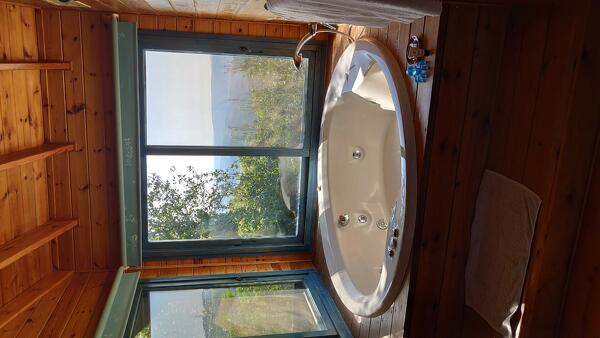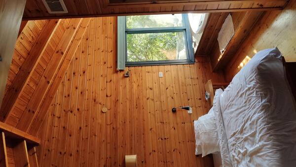 קמין עצים ממוקם בפינה, בשידת העץ מחכים לאורחים ספרים מעניינים, סרטי קולנוע ומשחקים.  בחלל נפרד - ג'קוזי עגול וגדול מהרגיל הממוקם בסמוך למיטה ומוקף בחלונות לנוף.