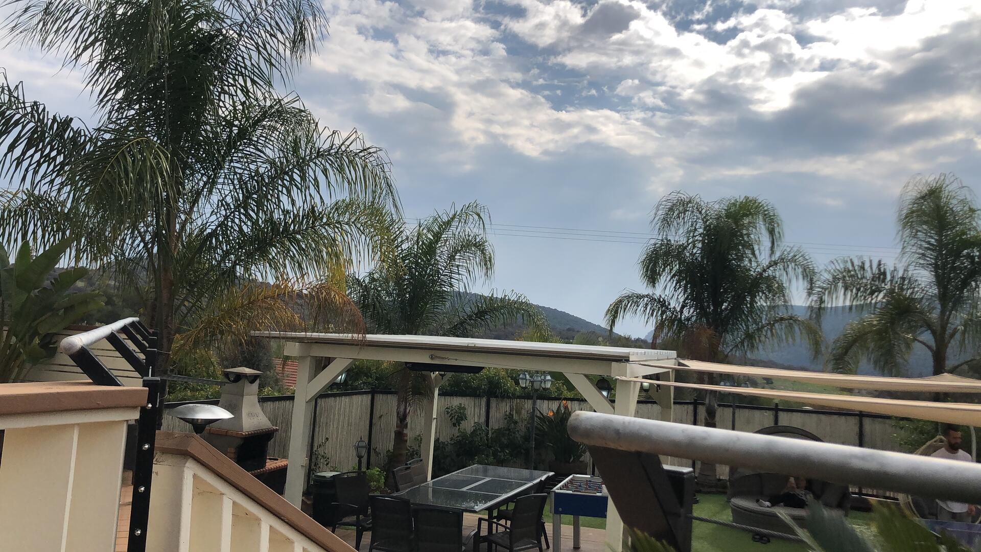 מדובר בבית פרטי עם כניסה מטופחת וחניה פרטית. נכנסתי לחצר ומשם השביל מתפצל ל-3 מרחבים: כניסת הוילה עם פינות ישיבה, ומעבר לאזור הזה, נכנסים למתחם "דק" סביב בריכה גדולה ומחוממת, ובתוכה - הפתעה נעימה: משטח רביצה גדול עם זרמים. מסביב: מיטות שיזוף (בקיץ), שמשיות, ג'קוזי ספא, ופינת ישיבה.