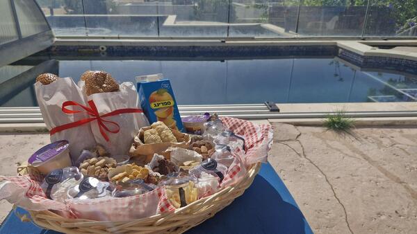 במתחם נפרד כאמור ישנן ארבע סוויטות נוספות: הכניסה אל "הסוויטה המרוקאית" היא דרך שביל העובר לצידו של בית המארחים, במפלס הגבוה ביותר. אני מגיע לחצר הבנויה של הסוויטה, שמכילה בריכת שחיה מחוממת יפהפיה אשר צופה לנוף הנהדר. היחידה אמנם צמודה לסוויטת "ההיכל הרומאי" בקיר משותף אולם התכנון גורם לכך שקשה להרגיש בזה מבחינה ויזואלית. דלת מהממת עם ריקועי נחושת מובילה אל הסוויטה, ומייד נגלה בפני עולם עיצובי עשיר במוטיבים מרוקאים בכל פינה. עושה רושם שאין כאן נקודה עליה העיצוב פסח: הריצוף ואריחי המטבח המצויירים, ראש המיטה המרופד, החלונות הקשתיים, הוילונות המיוחדים. חלק מהפריטים, מספרת לי גיתית המארחת, הגיע ישירות ממרוקו. הצבעים האוריינטליים שמשובצים בפריטים השונים בהחלט מעניקים את האווירה הדרושה. בחלל ישנה פינת ישיבה מעוצבת, מטבחון מאובזר ופינת אוכל נוחה, ג'קוזי הפונה לנוף ומיטה זוגית. בנוסף יש מקלחון ושירותים סגורים.