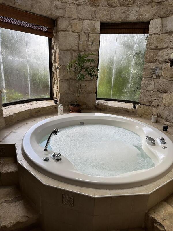 אי אפשר שלא להחסיר פעימה למראה הכללי של בית האבן המרשים והגדול. תהליך הבנייה ארך כארבע שנים. כל אבן שהונחה זכתה ליחס של כבוד, אין אבן זהה לרעותה בגוון ובצורה עם שילוב מנצח של ריהוט עץ חמים בגוונים כהים ובהירים. קמין קלאסי בצבע שחור מוסיף רבות לאווירה הרומנטית. יש כאן ג'קוזי ענק מוגבה, שחלקו החיצוני מכוסה אבנים גליליות לא מעובדות. החלל מחולק לשניים- ובחלקו השני נמצא ח' השינה עם תקרה משופעת וקורות עץ. גם כאן יש חדר מקלחת ענק, עם שני מקלחונים. ליח' יש בריכת שחיה פרטית.