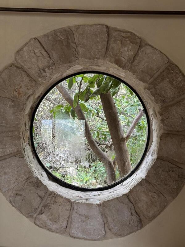 בכניסה לגינה של "הפנינה" ניצב עץ אקליפטוס ענק ואת דלת הכניסה מעטר עץ תות שצהבהבות עליו משתלבת עם קיר האבן ממנו בנוי המבנה, דבר היוצר מראה ציורי מרהיב עין. אי אפשר שלא להתרשם מהחשיבה על כל פרט, עד הקטן ביותר. המרפסת הבנויה מקורות עץ (והפרגולה המצלה עליה), ממשיכה את הקו היוקרתי שבתוך המתחם. היא טובלת בצמחיה טבעית ומתמזגת בה באופן מושלם.