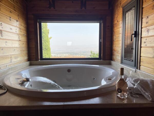 ג'קוזי מלבני גדול ממוקם בסמוך לחלון רחב הצופה אל הנוף הפנורמי. הוא שקוע בנישה אשר מופרדת על ידי וילון. זוג, אשר יחליט להתפנק בג'קוזי עשוי להרגיש כאן "בעננים", במלוא המובן של המילה.