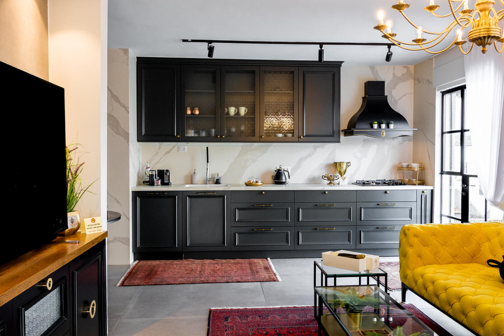 המטבח מאובזר לחלוטין ומוכן לשרת את טובי הבשלנים. מכונת הקפה האיכותית ממתינה לקפה של הבוקר ופינת האוכל תשמש את מי שיחליט לסעוד בסוויטה ולא בפינת הישיבה החיצונית מול הנוף. הסלון עצמו מרווח, נוח, יפהפה, ומכיל טלויזיה חכמה ענקית.