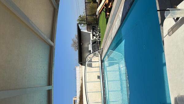 לסוויטה חצר גדולה ומגודרת עם בריכה בנויה, מחוממת ומקורה, גדולה ומושקעת ביותר, שצופה אל הנוף שעליו כבר הרעפנו מחמאות למעלה.