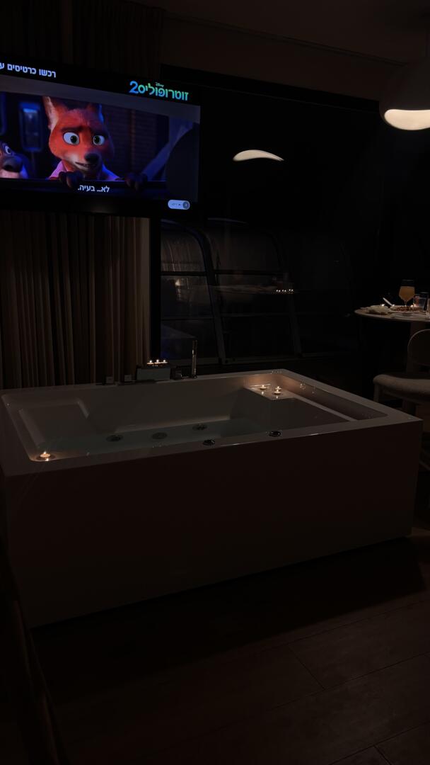 החלל הפנימי בוטיקי, מינימליסטי ומעוצב ברמה גבוהה: מיטה זוגית מרשימה, ג'קוזי מרובע וגדול, מטבחון פונקציונלי ובר עם שני כיסאות שמשמש כפינת אוכל זוגית חמודה וחדר שינה נוסף המתאים לאירוח עם ילדים. פלטת הצבעים ששולטת פה היא רכה ונעימה, ורצפת הפרקט מוסיפה עוד חמימות לחלל המינימליסטי והיוקרתי.