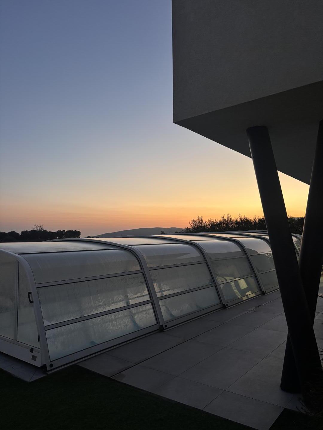 לסוויטה חצר גדולה ומגודרת עם בריכה בנויה, מחוממת ומקורה, גדולה ומושקעת ביותר, שצופה אל הנוף שעליו כבר הרעפנו מחמאות למעלה.