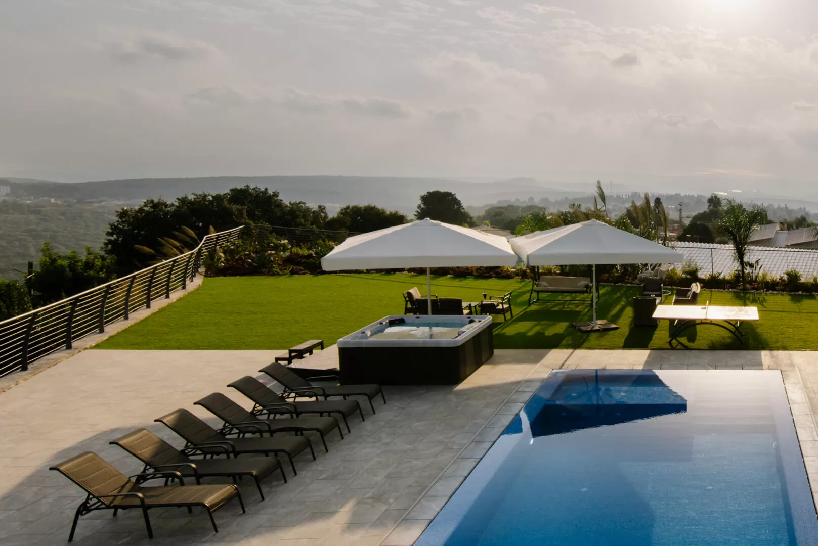 ואם כבר הגענו לבריכה, אז כאן מדובר באחת הבריכות הגדולות והיפות שראינו. היא מחוממת באופן מושלם ומתאימה לרחצה גם בימים קרירים בזכות הקירוי המודולרי, הענק, והסופר משוכלל שיש לה. החשיבה על הפרטים הקטנים מורגשת באחוזת רון בכל פינה, אבל לא יכולים להגיד שלא הופתענו כשגילינו שגם הקטנטנים פה מקבלים יחס מיוחד, וזוכים לבריכה קטנה משלהם עם מים רדודים, שתחומה בתוך הבריכה הגדולה. לצד הבריכה תמצאו מיטות שיזוף ופינות ישיבה, ג'קוזי ספא שצופה אל הנוף ואזור ירוק עם דשא, שולחן סנוקר מקצועי, טניס שולחן, נדנדה גדולה מול התפאורה הירוקה וגם אזור ברביקיו עם קירוי נוח לעונת החורף.