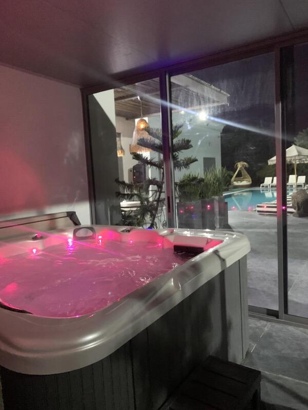 גולת הכותרת של המקום הוא ללא ספק מתחם החוץ המהמם (ואנחנו לא מחלקים כאלה סופרלטיבים בקלות). בריכה ענקית ומרשימה ביופיה נותנת את הטון וגונבת את כל הפוקוס, כשסביבה פזורים פופים מפנקים, מיטות שיזוף ופינות ישיבה. אה, וגם יש מקלחון חיצוני כאן, שזה ממש מגניב בעינינו. אם אתם מגיעים למתחם בחורף תוכלו ליהנות מהג'קוזי ספא הפרטי שיושב בחדר ייעודי עם ויטרינות שקופות הצופות אל החוץ, כי הבריכה (נכון לנובמבר 2020) לא מחוממת.