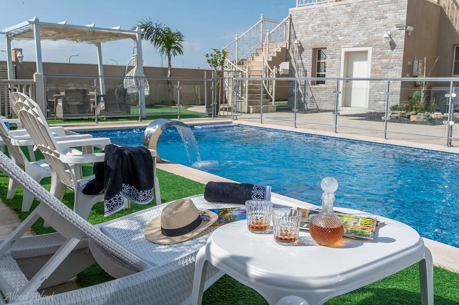 הבריכה כאן (מחוממת בעונות מעבר - בין חודש אפריל לנובמבר) גדולה ויפהפיה עם ספסל ג'קוזי, ומפל שמוסיף עוד קצת יופי לסטייל הכללי. יש כאן פינות ישיבה מוצלות וכמובן עמדת מנגל נוחה.