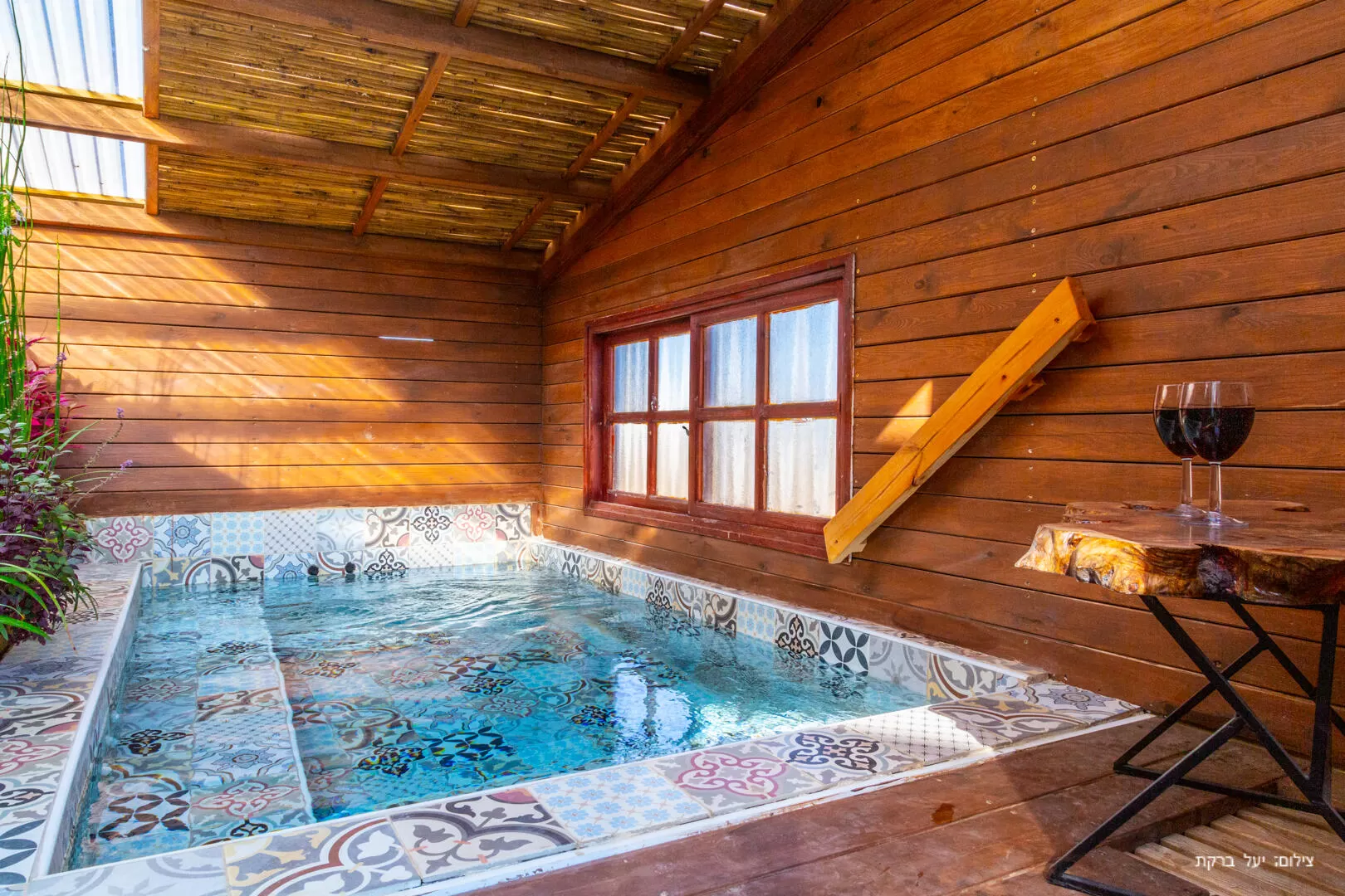 סמוך לבריכה ישנה בקתה קטנה ובה בריכת זרמים עם מים חמימים בכל ימות השנה. הבריכה מקורה, עשויה מאריחים מעוטרים, ומוקפת בצמחייה מצד אחד וחלון אל הנוף הפנורמי מצדה השני.