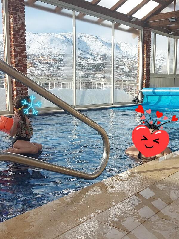בקצה השני נמצאת הכוכבת של המתחם – בריכה גדולה, מקורה ומחוממת שגם היא צופה אל הנוף המדהים. בימי הקיץ תוכלו לפתוח את הוויטרינה וליהנות מאוויר הרים שיש רק כאן.