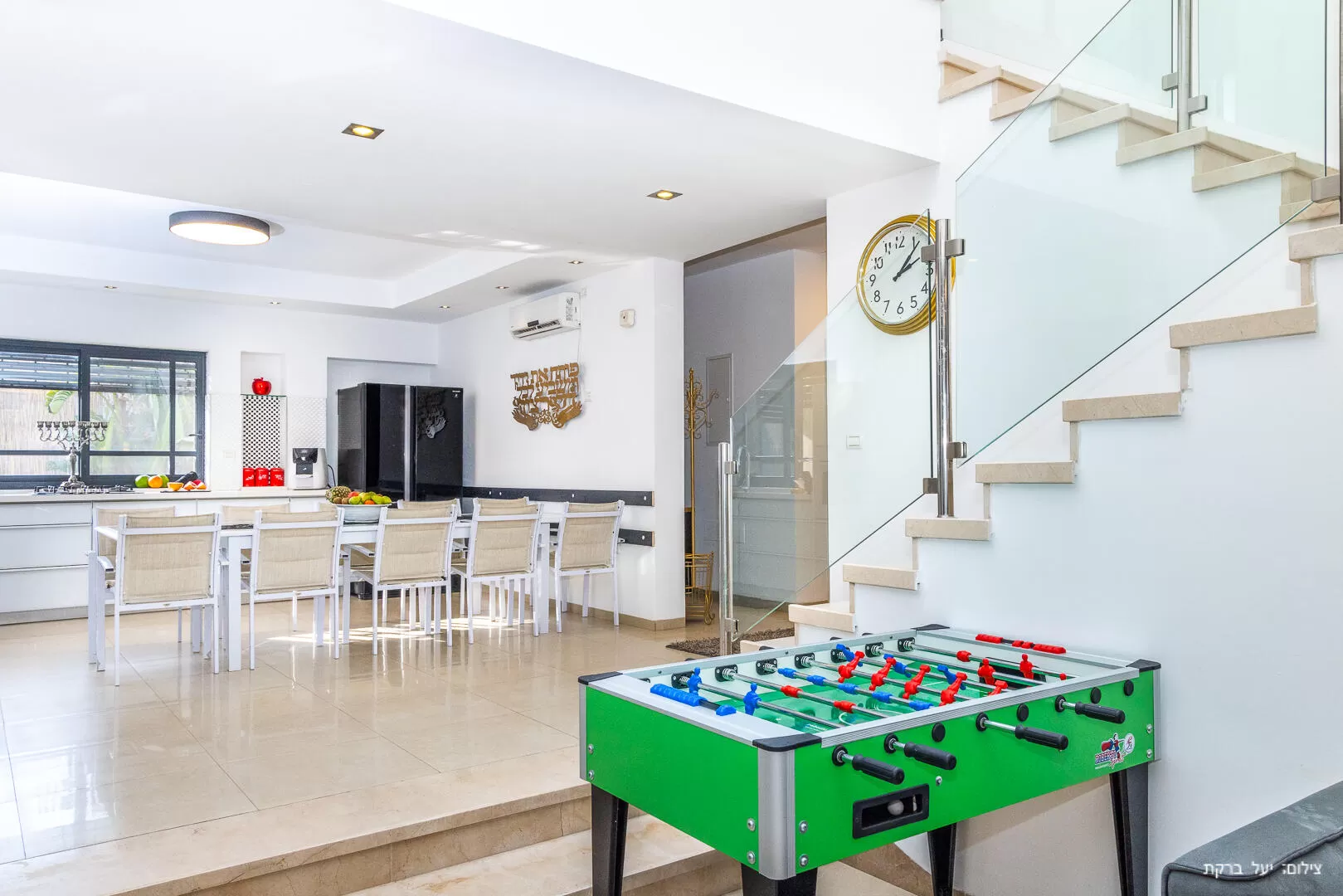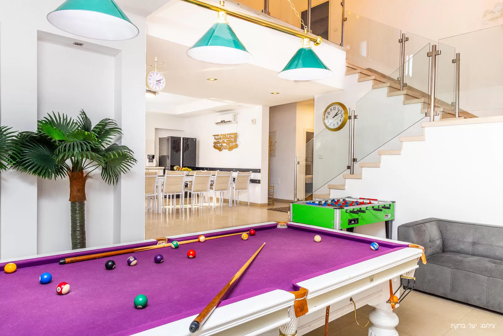 בתוך הווילה תמצאו מטבח וסלון רחבי ידיים במיוחד. המטבח מתאים לבישול עם כל האביזרים הדרושים לכך – כולל תנור וכיריים, כלי אוכל וסירים – כששולחן האוכל מתאים לעשרה סועדים. הסלון הגדול כולל טלוויזיה 75 אינץ', משחקים כמו כדורגל שולחן וסנוקר וכן מערכת ישיבה יפה ואיכותית המאפשרת לכמות גדולה של אורחים לבלות יחד בנוחות וללא צפיפות.