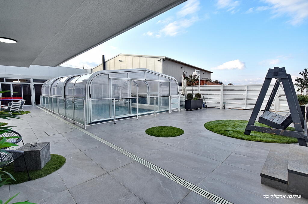 גולת הכותרת של "אחוזת הנוף הצפוני" היא ללא ספק מתחם החוץ - את הבריכה הבנויה הענקית שנמצאת ממש בכניסה אליו לא ניתן לפספס. זוהי בריכה בגודל 8.5X4, מחוממת ל-32 מעלות ומזמינה לטבילה מפנקת בימים הקרירים. בימות הקיץ היא מענגת לא פחות - הקירוי ניתן לפתיחה, ומיטות השיזוף מזמינות להתפנק עליהן ולספוג קצת ויטמין די.