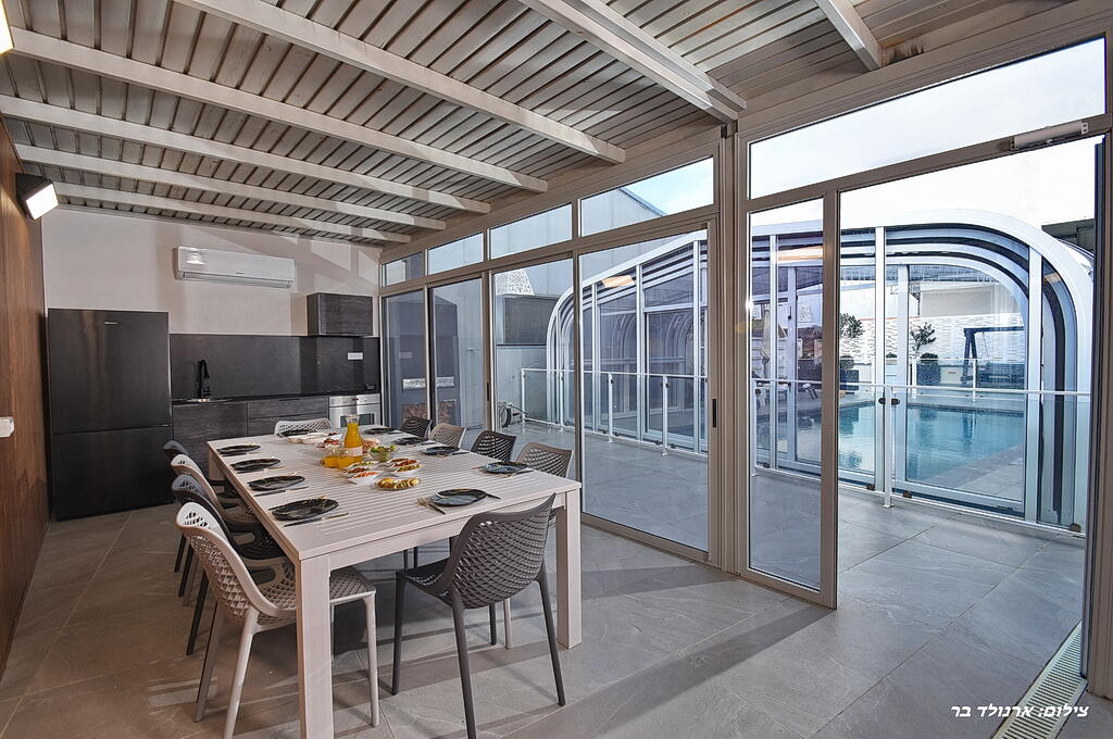 עוד במתחם החוץ תמצאו מתחם נפרד מקורה ובו מטבח מאובזר ומשותף לאורחים. בצד המטבח ממוקם ג'קוזי ספא גדול (לאלה שאוהבים בעיקר לתת עצות לטבחים ופחות לבשל בעצמם), פינת ברביקיו (לא לשימוש בשבת) שולחן פינג פונג ופינות ישיבה עם ערסל.