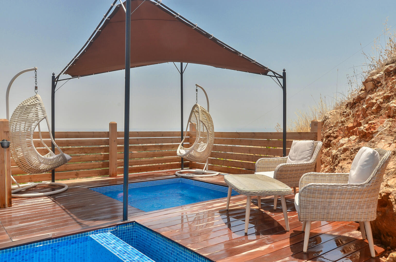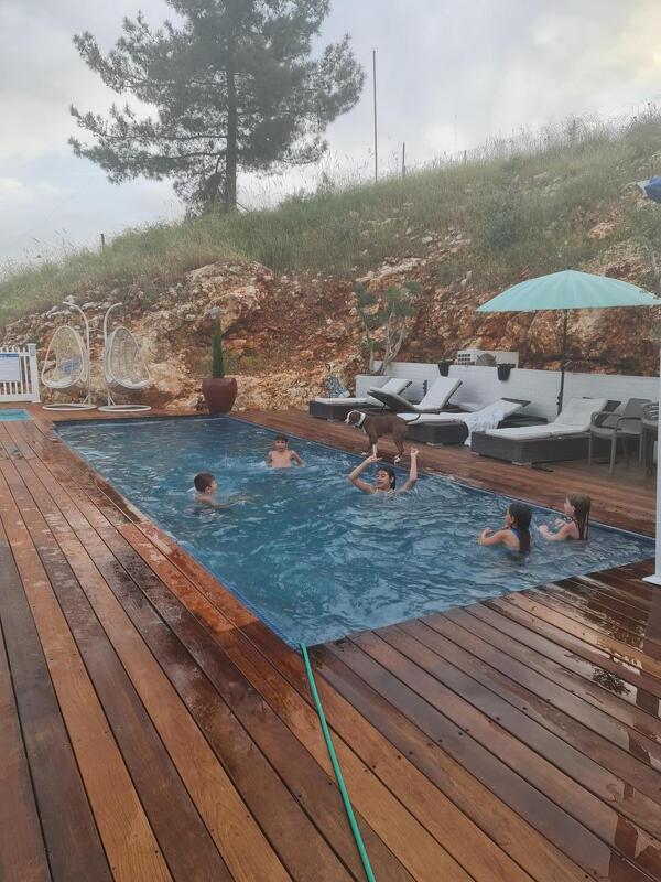 הווילה מציעה ארבעה חדרי שינה בשתי קומות, ומגוון חללים משותפים שכיף לבלות בהם יחד. הראשון מביניהם שפוגשים הוא מתחם החוץ, ובו בריכה בנויה גדולה בגודל 9X4 ובעומק של בין 90-140 ס"מ. לא רחוק ממנה תמצאו בריכת זרמים מפנקת ולוהטת תחת כיפת השמיים. צמוד אליהן יש מתחם ישיבה ומיטות שיזוף להתפנק עליהן תחת השמש. בחורף הבריכה מקבלת קירוי שמייצר מרחב ששומר על החום, ואתם יכולים לרחוץ להנאתכם בבריכה שמחוממת לטמפרטורה של 32 מעלות, שווה!