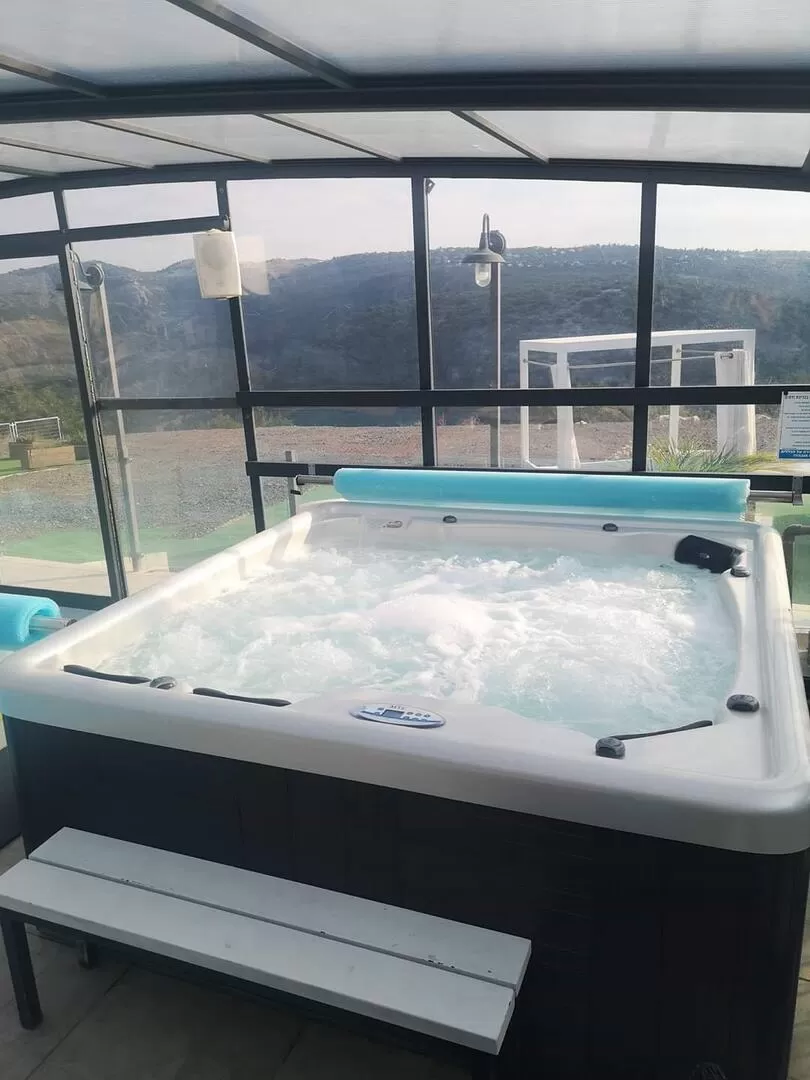 אזור הבריכה והג'קוזי ספא הגדול ניצבים מול נוף עוצר נשימה אל רכס הרים יפהפה, והם מחכים לכם כאן לרחצה נעימה בכל עונה. לבריכה גידור בטיחות לילדים, וקירוי מודולרי (החוסם גם קרינת UV) שניתן לפתוח לפי הצורך. מיטות שיזוף, פינות ישיבה וערסלי נדנדה.