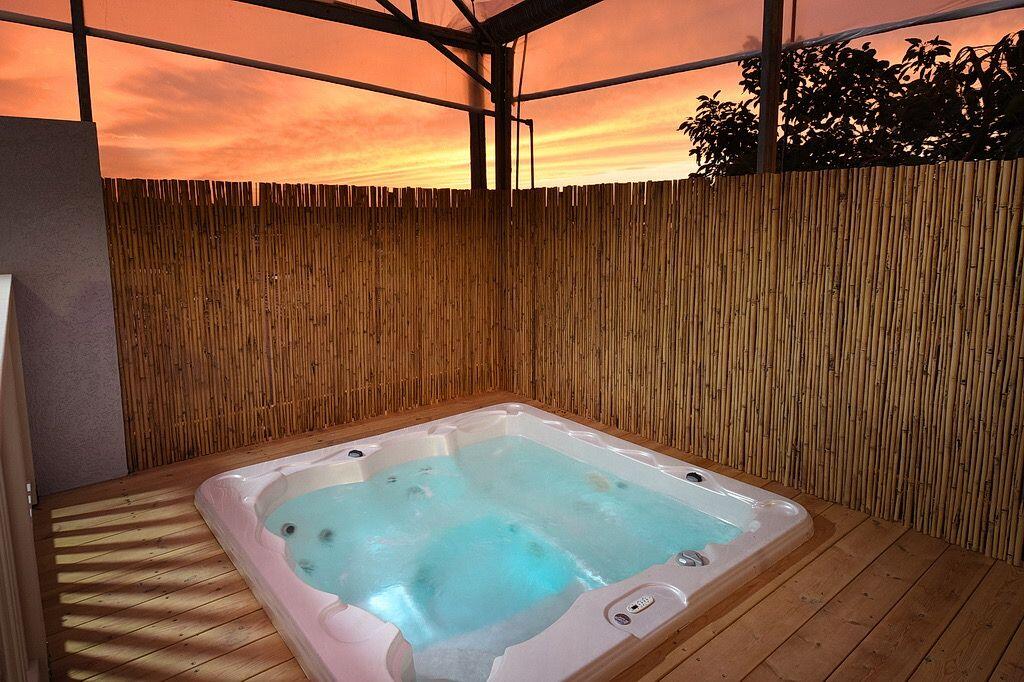 המתחם החיצוני מתהדר במרפסת דק רחבת ידיים ומקורה, עם בריכה פרטית מחוממת השקועה בדק, ג'קוזי ספא מבעבע בגובה הרצפה וכן פינת ישיבה ומיטות שיזוף. ניתן לבלות בחוץ גם בשעות הערב, אז מואר המתחם בתאורת ערב יפה המשרה אווירה רומנטית. מהחצר ניתן להמשיך אל מטע האבוקדו הצמוד, למי שרוצים להרגיש קצת טבע.