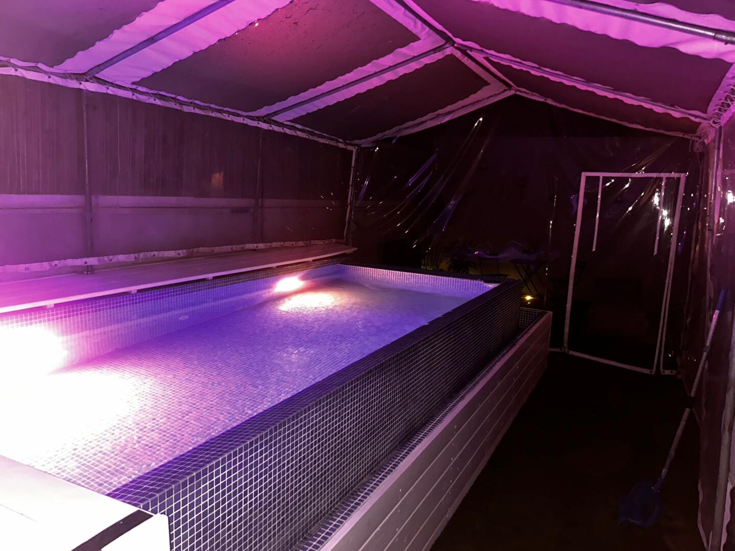 באזור החיצוני ישנה בריכה מקורה וחלקה פתוח לשמש, מוקפת בדשא סינתטי, פינת ישיבה, פוף רביצה ומנגל פחמים. צמוד אליה אזור מקורה עם ג'קוזי ספא.