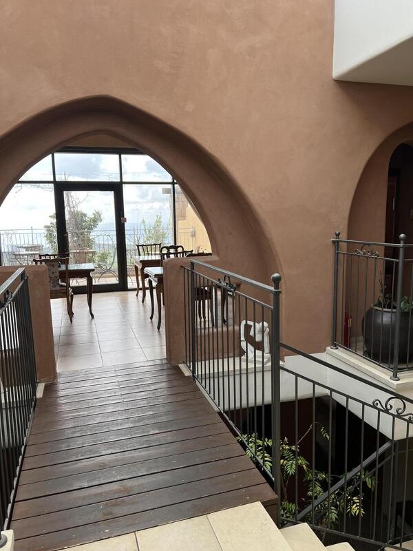 מתחם החוץ של המלון שוקק חיים וטבע גלילי: עצי זית, גינות פורחות ומלאות בצמחי תבלין ובריח לבנדר וגפנים שמטפסים על קירות האבן מכניסים אותנו לאווירה ים תיכונית. חמש הסוויטות חולקות בריכה מרעננת (מחוממת ומקורה בחורף) עם פינות שיזוף על דשא (סינטטי), פינת ישיבה, ושמשיה.