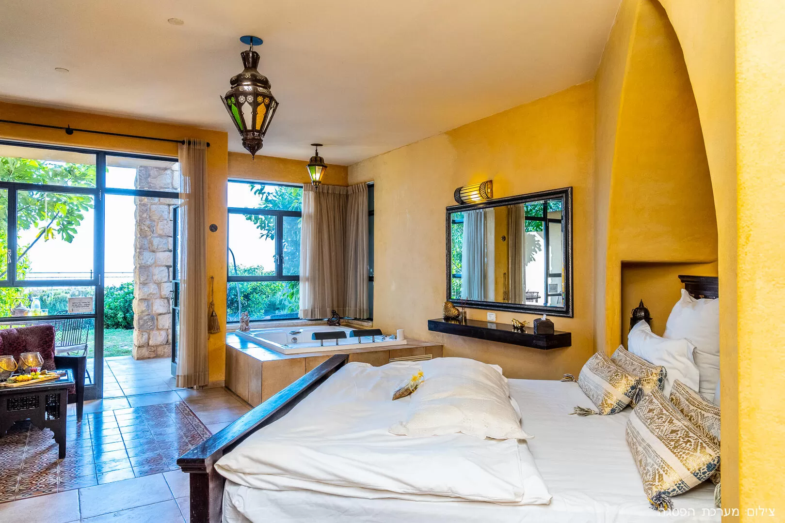 הסוויטות נהנות מפרטיות מלאה, מכניסה ויציאה פרטית, ולכל אחת יש מתחם חוץ אינטימי ופרטי משלה. בכל סוויטה יש ג'קוזי זוגי גדול המאפשר פינוק ומנוחה, לצד חלונות גדולים שמכניסים את האוויר והנוף של הגליל לתוך החדר. המיטות הזוגיות גדולות ונוחות במיוחד, חלקן מעוצבות בצורה ייחודית (כמו המיטה העגולה שבסוויטת הרמוניה). עוד בסוויטות יש אזור ישיבה עם טלוויזיה חכמה, מטבחון עם מכונת אספרסו טוחנת ומקרר קטן, וחדר רחצה נעים. בסוויטה ה"קלאסית" ובסוויטת "תשוקה" יש גם קמין שמוסיף חום ורומנטיקה בעונת החורף.