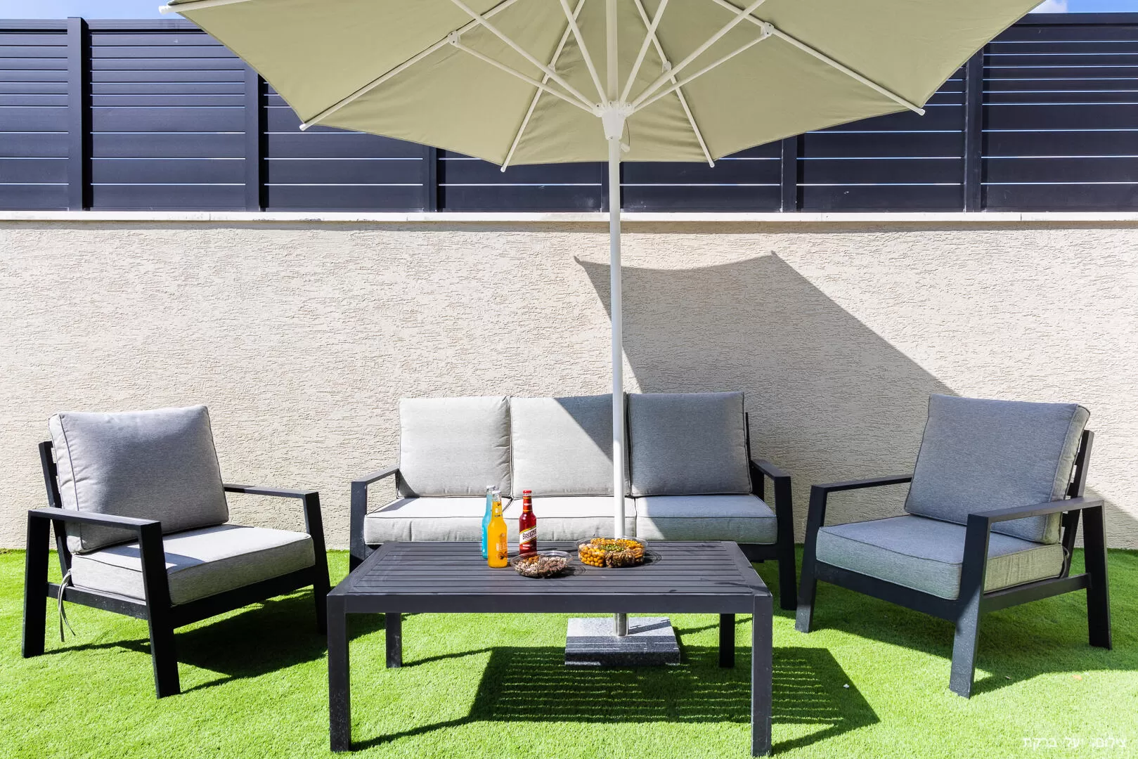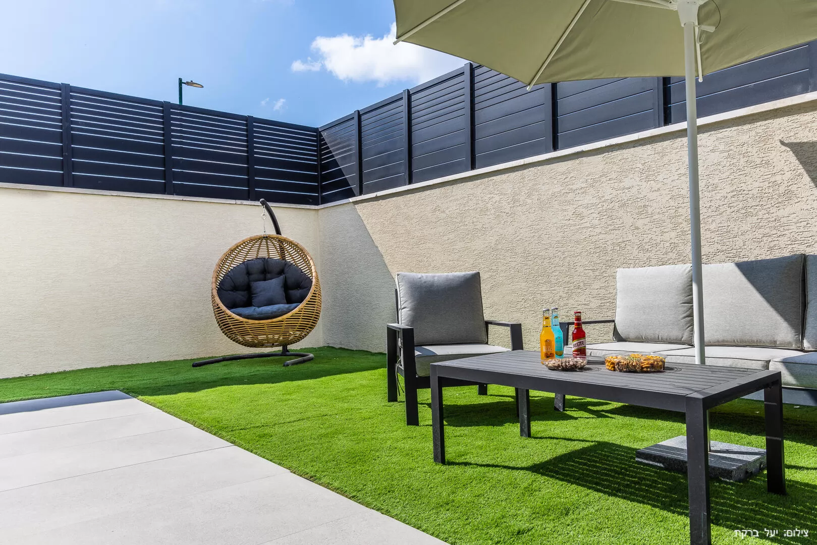 מתחת לגזיבו ענקי בלב המדשאה, תמצאו אזור ישיבה גדול שמזמין את כולם להתכנס יחד, והמרחב כולו כולל ערסלים, נדנדות, קונכיות רביצה, ואזורי ישיבה בסגנון סלוני. שפע אזורי הישיבה מאפשרים זמן שקט ופרטי גם כשמתארחים כאן בקבוצה גדולה. לקטנטנים שבחבורה יחכו כאן מתקני שעשועים, ולגדולים יותר שולחן פינג פונג ופוקר למשחקים סוערים.