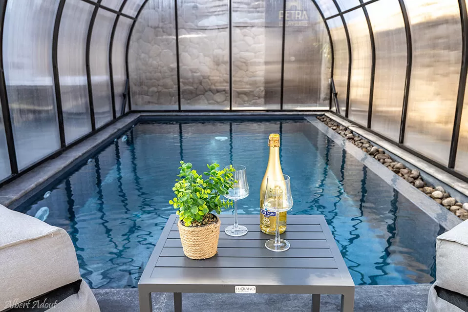 שתי הסוויטות של פטרה מתאימות לזוג עם עד 3 ילדים (מעל גיל 10). הסוויטות זהות ומרשימות מאוד בעיצוב המוקפד והשיקי שלהן. החלל עצמו אמנם אינטימי, אבל מתוכנן בחוכמה ופונקציונליות מדהימה. נוף הבריכה הפרטית (מחוממת ומקורה בחורף) שבמתחם החוץ נשקף דרך חלון הזכוכית הגדול, שנמצא בין המיטה הזוגית הגדולה לקמין החשמלי היפהפה. שילוב של מראות ותאורה נכונה, יוצרים מראה יוקרתי ומעודן.