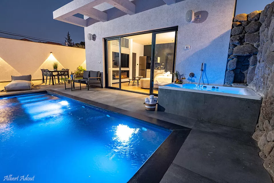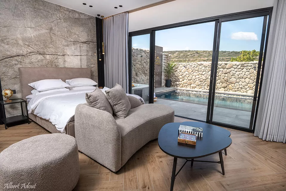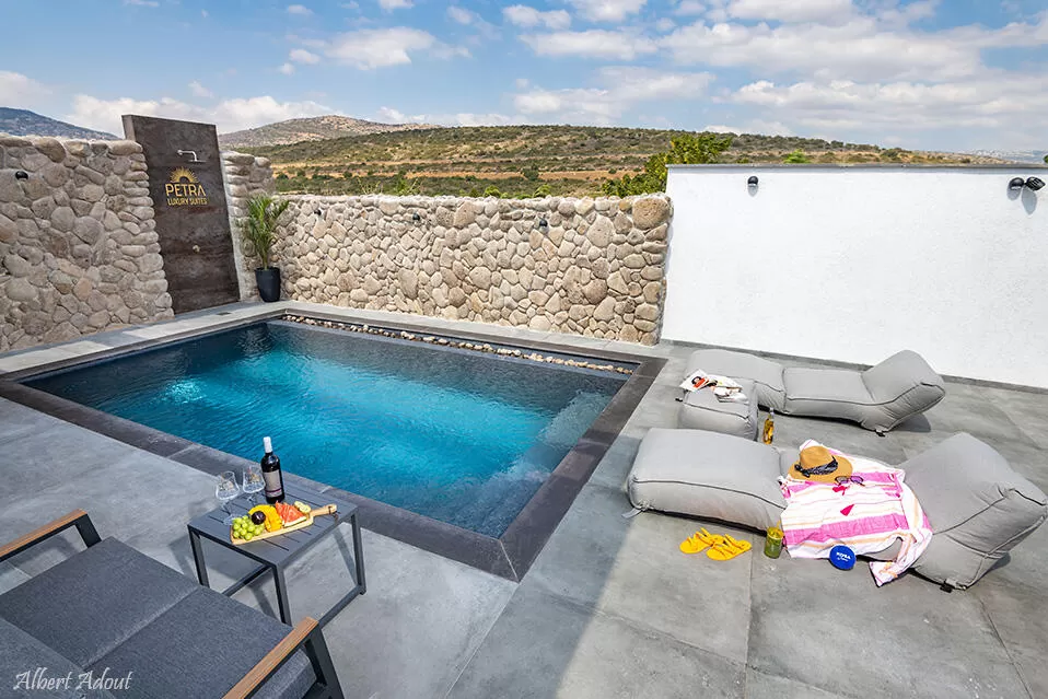 שתי סוויטות יוקרה פרטיות עם בריכה יפהפיה ומחוממת, עיצוב פנים עדכני ומרהיב ואפילו חדר שינה נפרד לילדים - פטרה היא מתחם לאוהבי החיים הטובים