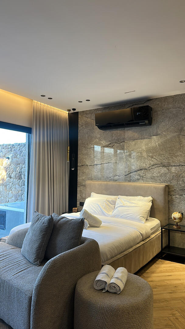 שתי הסוויטות של פטרה מתאימות לזוג עם עד 3 ילדים (מעל גיל 10). הסוויטות זהות ומרשימות מאוד בעיצוב המוקפד והשיקי שלהן. החלל עצמו אמנם אינטימי, אבל מתוכנן בחוכמה ופונקציונליות מדהימה. נוף הבריכה הפרטית (מחוממת ומקורה בחורף) שבמתחם החוץ נשקף דרך חלון הזכוכית הגדול, שנמצא בין המיטה הזוגית הגדולה לקמין החשמלי היפהפה. שילוב של מראות ותאורה נכונה, יוצרים מראה יוקרתי ומעודן.