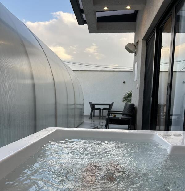 מתחם החוץ של הסוויטות שופע נוחות וסטייל, ותוכלו ליהנות גם מפרטיות מלאה. הצצה קטנה מעבר לחומת אבני הבזלת מגלה את נוף הגבעות וההרים הגלילי. יש כאן בריכה מחוממת יפהפיה הבנויה בגובה הרצפה עם חלוקי נחל בשוליה, ג'קוזי מפנק שניצב בסמוך אליה, מקלחת חוץ מפנקת, פינת ברביקיו נוחה לעבודה, ובנוסף תוכלו ליהנות כאן מרמקולים ותאורת חוץ שמשאירים את המתחם רלוונטי ומהנה גם בלילה.