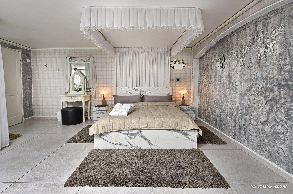 ניכר שיש כאן דגש על ניקיון ואבזור, כמו על הטאץ' העיצובי הביתי של המארחת מורגש בכל אחת מהן. הסוויטות בנויות כאופן ספייס עם מיטה זוגית, ג'קוזי מרווח, סלון עם ספה נפתחת ללינת הילדים, מטבחון קטן, ושידת מדפים לאחסון. אזור הרחצה הוא פתוח עם וילון שניתן להסיט, או דלת זכוכית שקופה למחצה. (בשתי סוויטות הג'קוזי משמש גם כמקלחת).