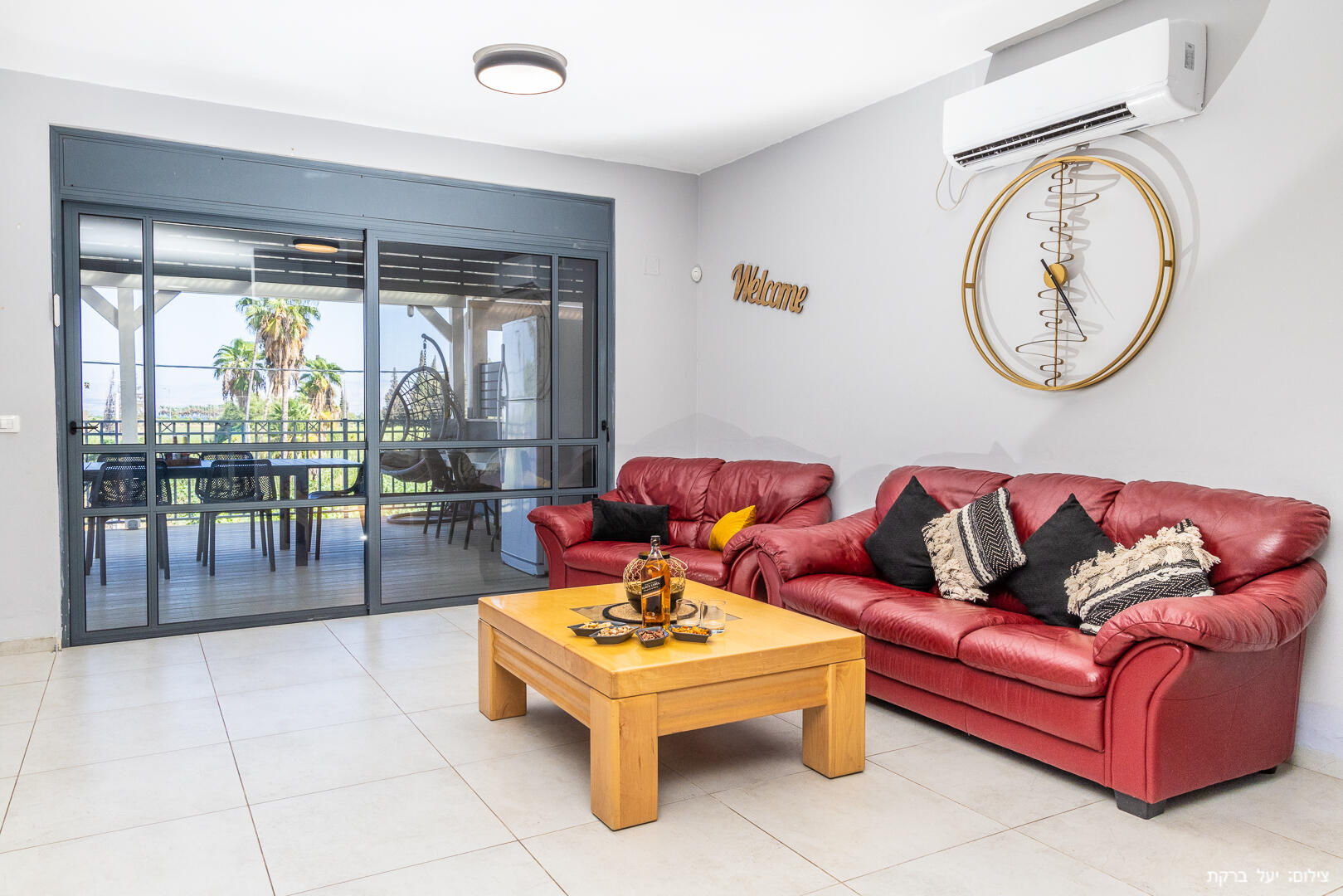 בקומת הכניסה מחכה לכם סלון מרווח, עם טלוויזיה חכמה וכדורגל שולחן לטורנירים משפחתיים. המטבח מאובזר באופן מלא לבישול, ופינת האוכל נפתחת ל-12 סועדים.