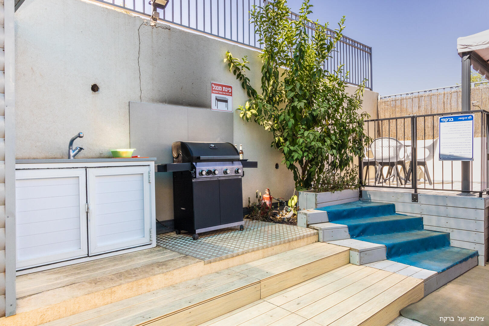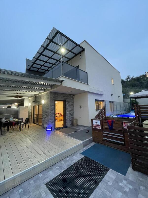במתחם החוץ תמצאו בריכה מפנקת מחוטאת במלח (ולא בכלור), שאפשר לכוון לטמפרטורה של עד 35 מעלות. בצמוד אליה יש ג'קוזי ספא גדול מפנק לא פחות, שמתאים לשבעה רוחצים. לצד עמדת הברביקיו יש פינת עבודה עם כיור, ומאזור זה יש כניסה אחורית ונוחה לווילה. התחושה כאן בגדול היא פרטית - בצד אחד של הווילה יש שטח טבעי פתוח ללא שכנים, ובצד השני שלה יש וילות אירוח נוספות. מרפסת הנוף בקומה השנייה צופה עד לכנרת, לרמת הגולן ולהרי הגליל.