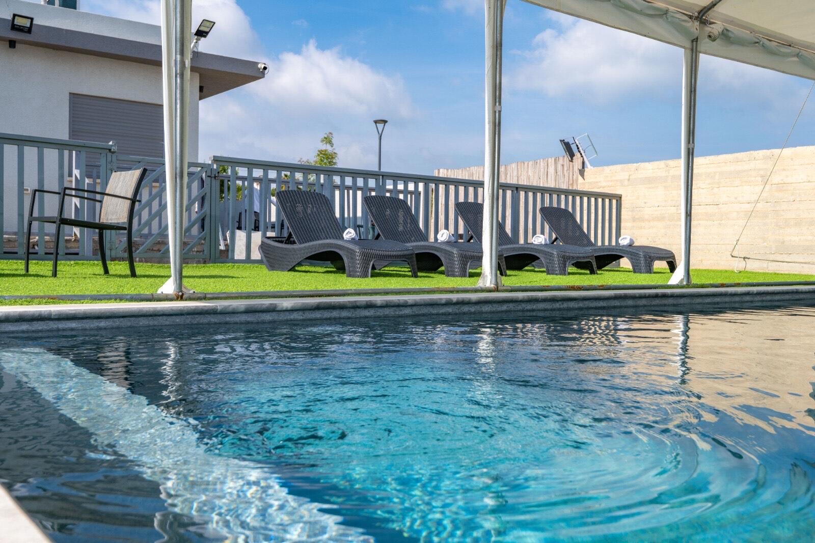 4.השימוש בבריכה ובמתקנים הנלווים הינו באחריות המתרחצים בלבד; אין מציל והאורחים מתחייבים להישמע לתדרוך והוראות בעלי הצימר.