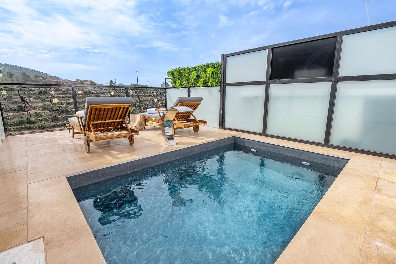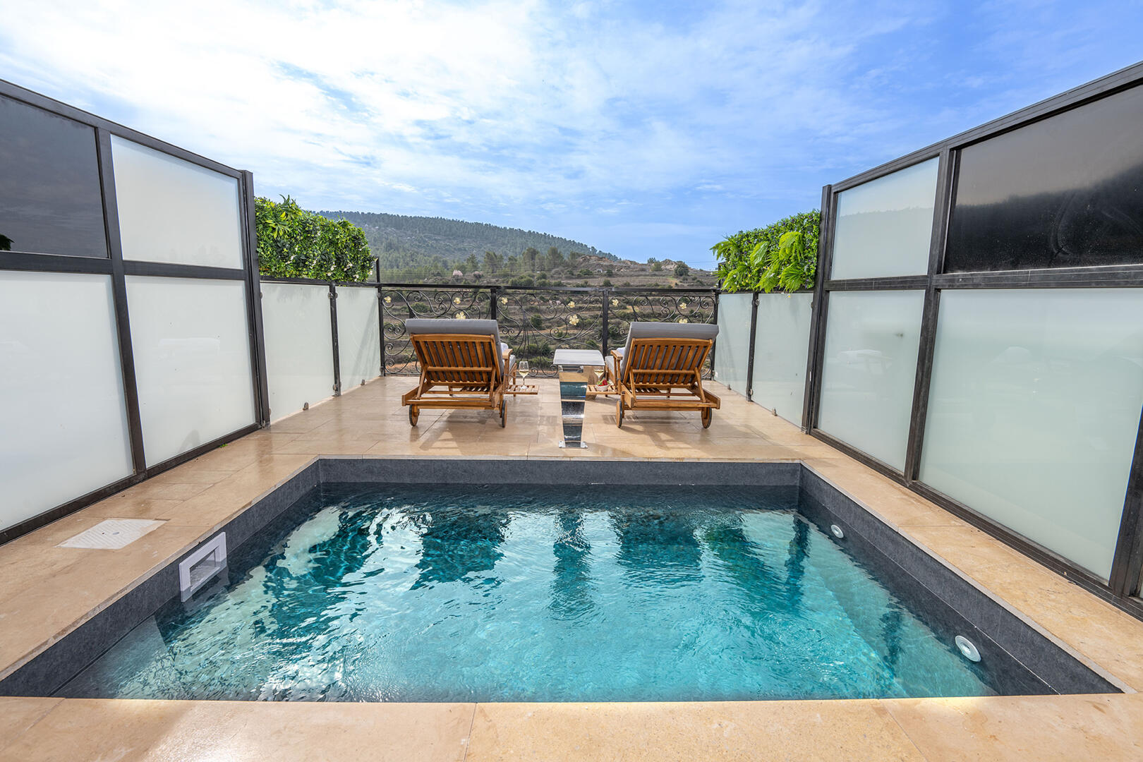 בכל סוויטה תיהנו מבריכה פרטית מחוממת עם נוף פתוח, מיטת קינג סייז רחבה עם מצעים איכותיים, טלוויזיה חכמה 55 אינץ׳ עם Netflix, קמין חשמלי לחורף, חדר רחצה מפואר עם מקלחון זוגי, מוצרי טיפוח וחלוקים מפנקים. בנוסף, יש פינת קפה עם מכונת אספרסו, מקרר קטן ופינת אוכל אינטימית. המרפסת הפרטית עם פינת הישיבה מול הנוף משלימה את החוויה
