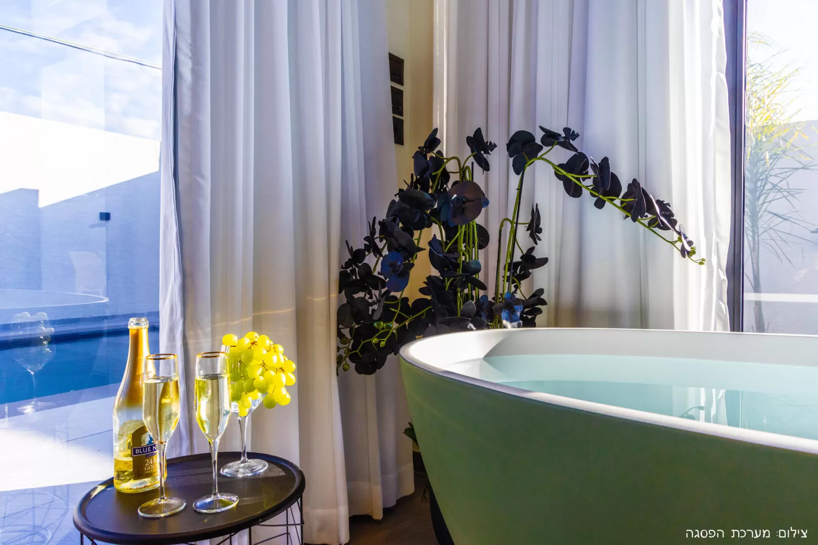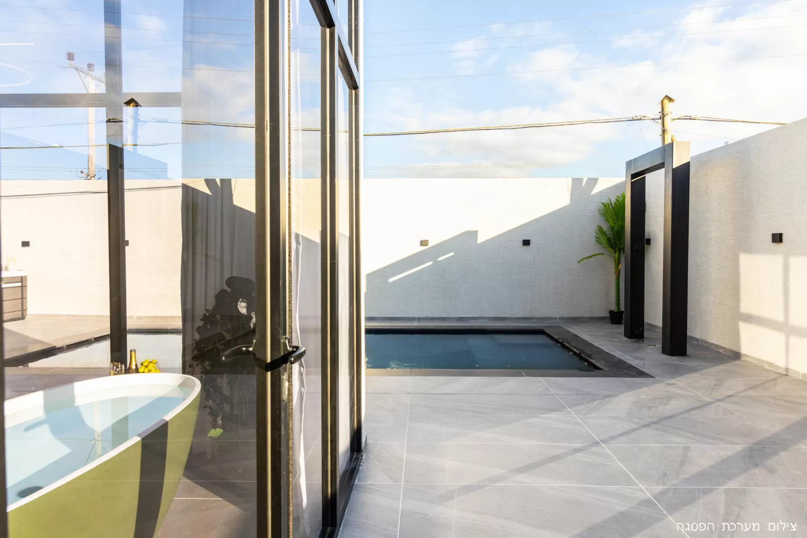 בפנים הסוויטה תוכלו לטבול באמבט stand alone יפהפה מול טלוויזיה ענקית בגודל 75 אינץ', ובמתחם החוץ תהנו מבריכה פרטית מחוממת ומג'קוזי ספא, שלצידם מקלחת חוץ מרעננת בעיצוב מודרני.