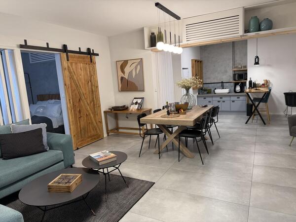 האווירה במתחם נעימה ומרגיעה מאוד. העיצוב שעושה שימוש בחומר גולמי, הבריכה האקולוגית, והסטייל שאופף את המקום - מחברים אותנו לווייב טבעי שמשרה שקט ושלווה פנימית.
